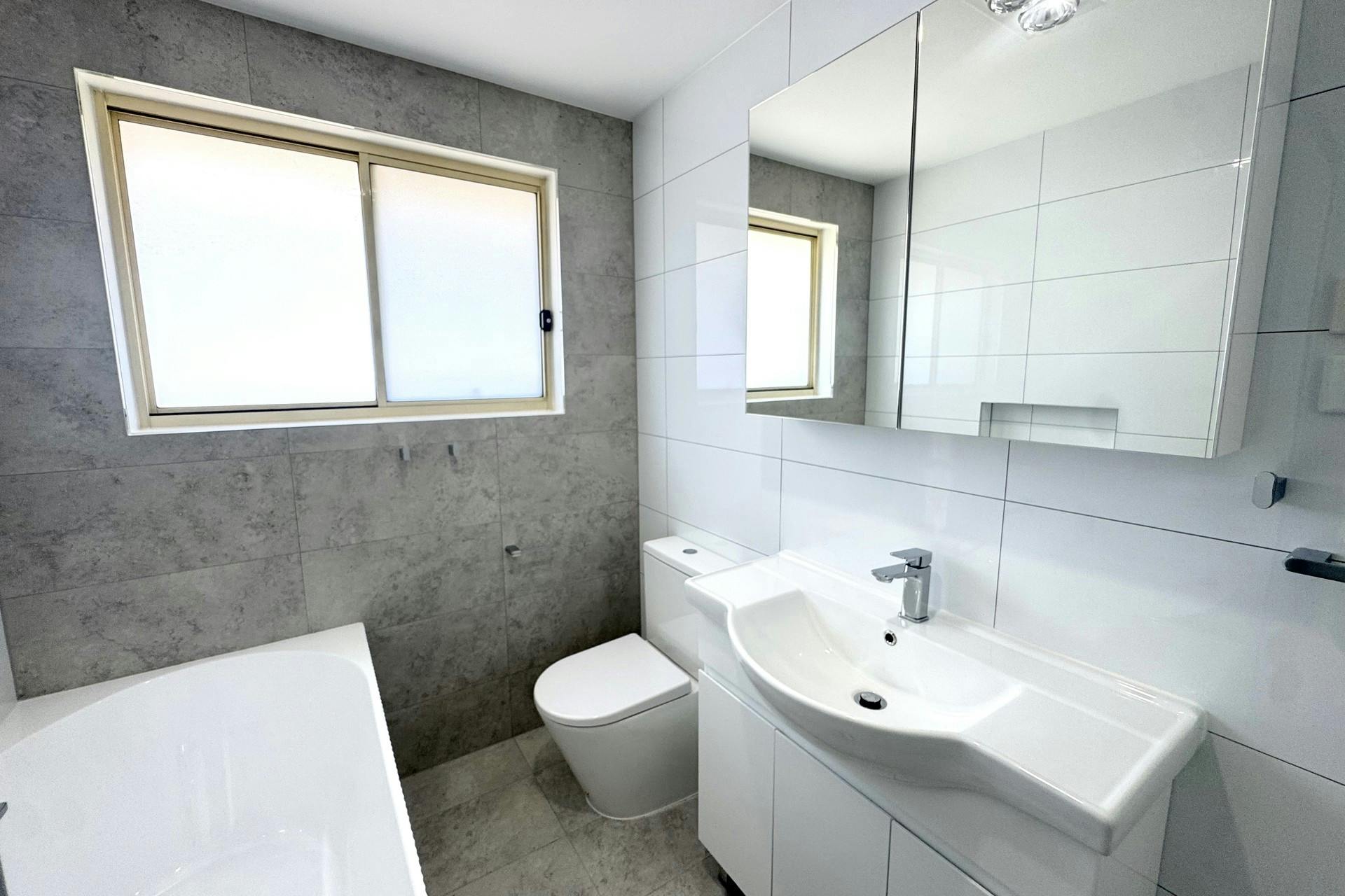- Brand new modern bathroom with separate bath and shower